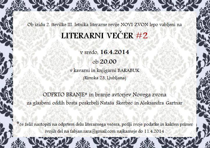 Izšla je nova številka literarne revije Novi zvon. Tokrat se s poezijo in prozo predstavijo: Sara Remžgar, Veronika Šoster, Gaja Jezernik Ovca, Nihilo Nichts, Sara Fabjan, Nataša Verk, Rok Vahter, Jernej Kusterle, Julijan Vršnik in Michelle Fjodorov.